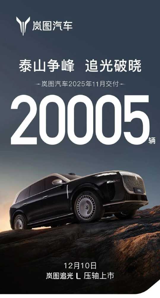 据岚图汽车官方微博,岚图汽车2025年11月交付20005辆,1-11月累计同比增长82%。 岚图汽车董事长、总经理卢放发文表示,岚图汽车11月交付突破两万辆,再创历史,站上全新高度。