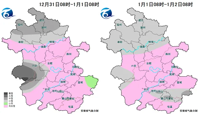 据安徽省气象台预报,12月31日至2026年1月1日我省有一次雨雪天气过程。31日沿淮淮北、大别山区和皖南山区有雨夹雪或小雪,其中淮河以北和皖南山区部分地区有中雪,大别山区部分地区有大雪到暴雪;其他地区有小雨转雨夹雪或小雪。2026年1月1日全省有雨夹雪或小雪,其中江南部分地区中雪,局部大雪。未来十天其他时段全省以晴 ...