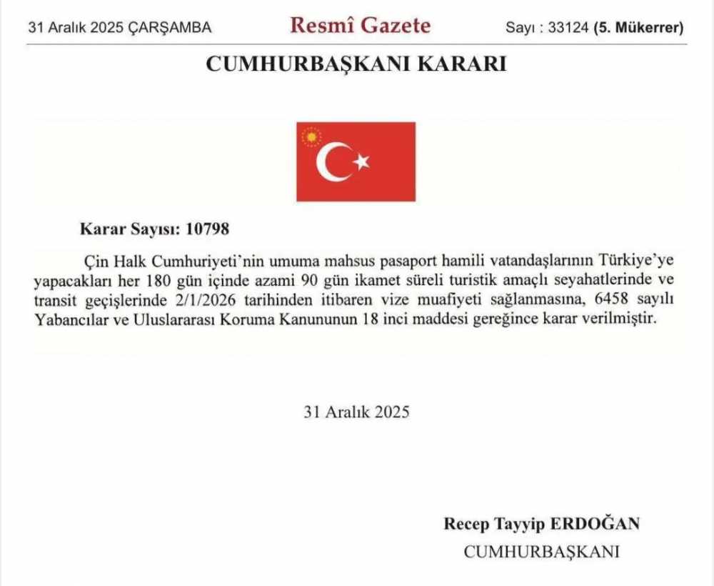 当地时间12月31日,土耳其《官方公报》发布总统令,宣布自2026年1月2日起,对持中国普通护照的公民实行免签入境政策。 根据规定,在每180天内,免签停留时间累计不超过90天,适用于旅游和过境目的。该决定依据土耳其《外国人和国际保护法》第18条作出。 ...
