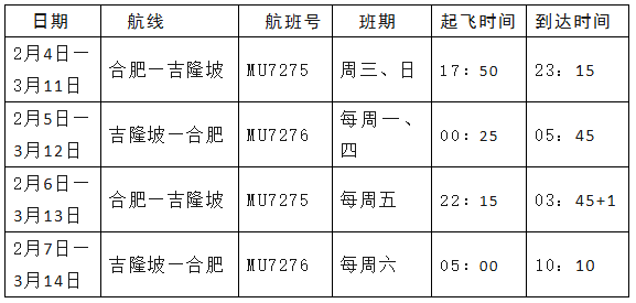 2026年2月4日至3月14日,合肥机场将首次开通至吉隆坡航线,由东航安徽分公司执飞,机型为空客A320。 吉隆坡航线开通正值春运,不仅为安徽及周边旅客春节期间出境旅游、探亲提供了直飞便利,同时也提升了合肥机场区域枢纽的通达性,为深化安徽与东南亚国家的经贸文旅合作注入了强劲动力。 吉隆坡有诸多经典景点。如标志性的 ...