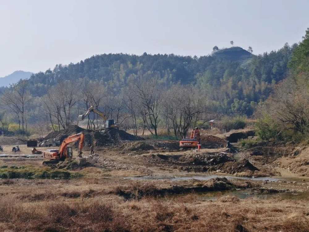 1月16日上午,在屯溪区阳湖镇紫阜新大桥上侧F008公路改线工程施工现场,大型挖机轮番作业。工程起点是阳湖镇紫阜村武容新大桥南侧(与佩琅西路连接),止于休宁县榆村乡辛峰塔底,规划新建道路长1千米、路基宽12米(浇筑路面10.5米)。新桥梁长13米、宽10.5米。·叶天寿· ...
