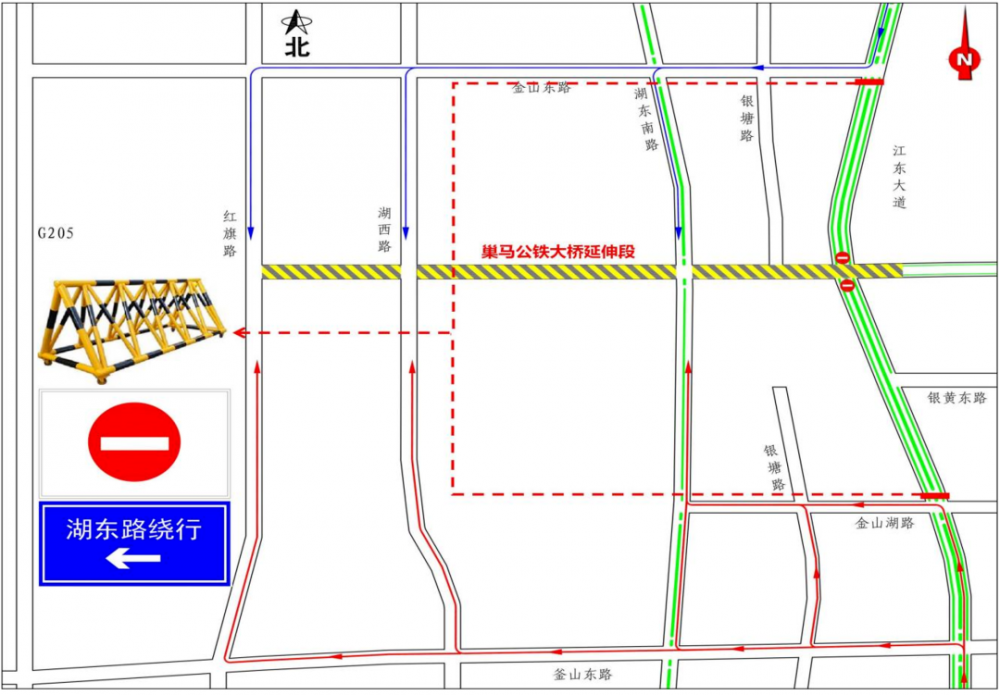 马鞍山市公安局交通管理支队和马鞍山跃马建设投资有限公司在1月28日联合发布巢马公铁大桥延伸段施工封路公告,详情如下↓ 因巢马城际铁路长江公铁大桥公路接线工程延伸段项目施工需要,施工期间计划对巢马公铁大桥延伸段实施全封闭施工。 一、施工范围 巢马公铁大桥延伸段与红旗南路交叉口往西228m至巢马公铁大桥延伸段与江 ...