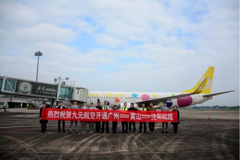 3月29日上午8时16分,一架由九元航空公司执飞的AQ1133客机平稳降落在黄山屯溪国际机场,标志着广州⇋黄山⇋沈阳航线正式开通。据了解,该航线每周四班,周一、周三、周五、周日稳定运行。·钟伟·