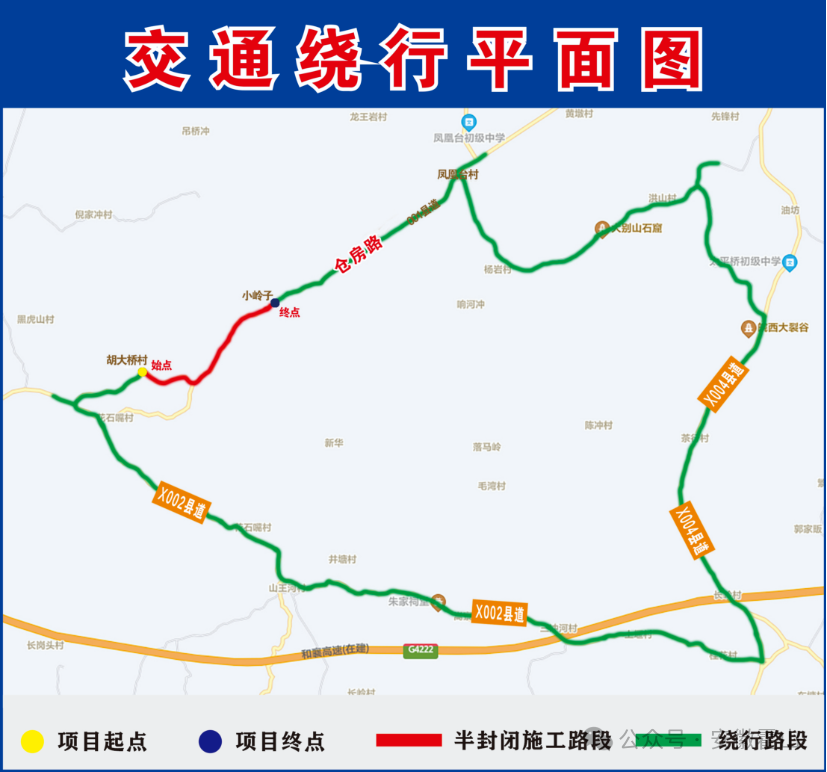 因霍山县大河厂至张店公路工程,对但家庙镇胡大桥村但凤路、仓房路升级改造,为保证通行安全,对K7+189.15(但凤路与楼石楼大路交叉口)~K10+624.747 (仓房路与金安区张店镇交界),里程长度3.435km。本段实施双向封闭交通管制,过往车辆绕行。限制通行时间:2026年4月11日至2026年10月11日请经胡大桥村往返的社会车辆从凤凰台 ...