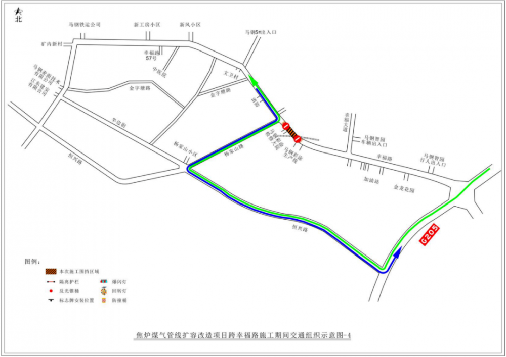 关于马钢有限能环部南北区连通管后段焦炉煤气管线扩容改造项目跨幸福路占道施工的公告 根据马钢有限能环部南北区连通管后段焦炉煤气管线扩容改造工程施工方案,2026年4月25日(周六)16:00—26日(周日)7:00将对幸福路(杨家山路—幸福大道)实施交通全封闭施工,施工时间15小时。届时,中断幸福路(杨家山路—幸福大道) ...
